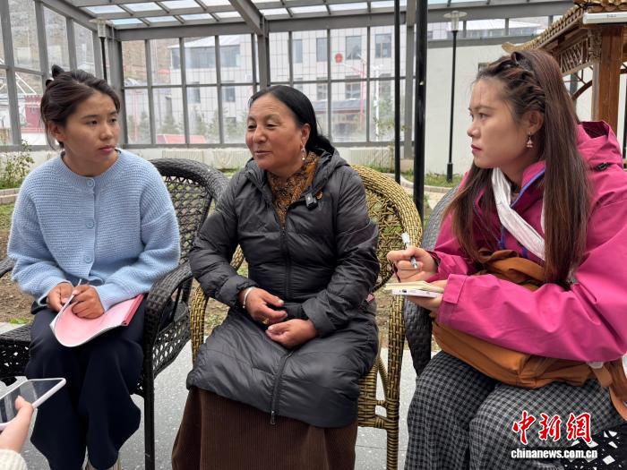 图为闭却卓玛(中)担当记者采访。旧宗淇 摄  雪山城,位于青海省果洛躲族自制州玛沁县北部,均匀海拔超越4200米。往常人们启车前去那里,会采选平展的花暂下快马路,而正在道对于里山崖上,另有1条“挂”于急流之上的陈马路寂静鹄立,那便是57千米少的东雪马路,雪山城已经的“天道”。  45年前,18岁的闭却卓玛搁停牧鞭,随着汉族布告陶振华,取牧平易近们一同扛起铁锹,正在峭壁上凿出那条性命线。正在过来的410多年里,它是雪山城毗连中界的唯独通讲,也是牧平易近走出年夜山的起始。